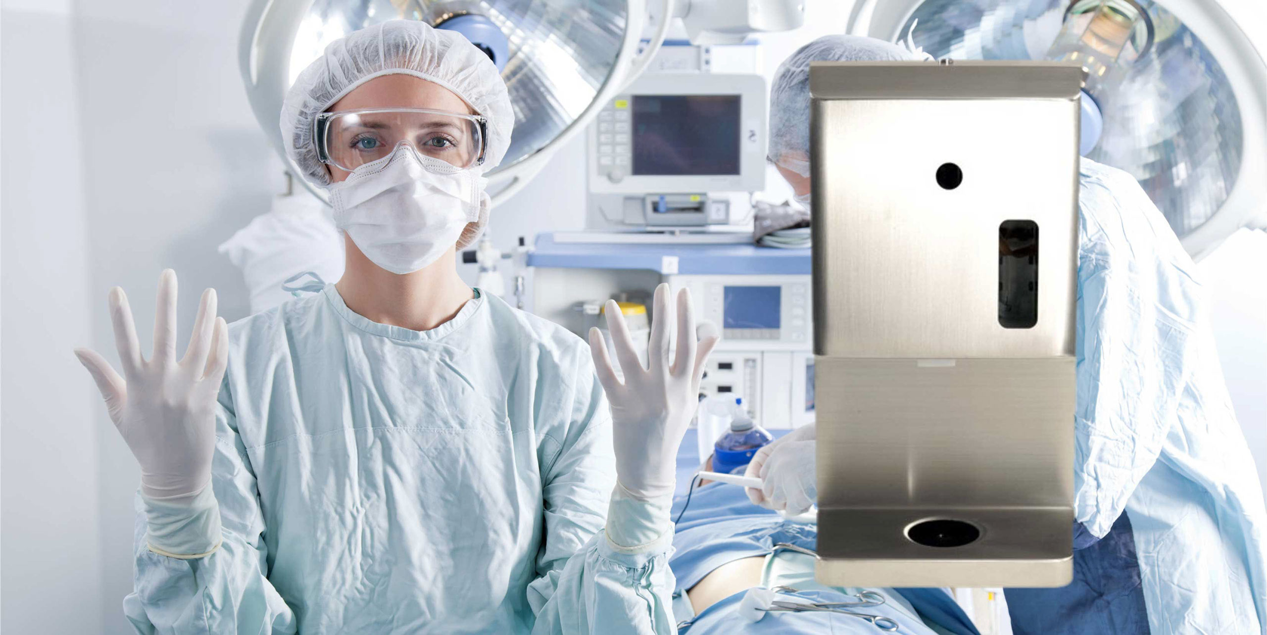 Beim Einführen der Hände löst der Sensor einen Sprühstoß mit der eingestellten Applikationsmenge aus.