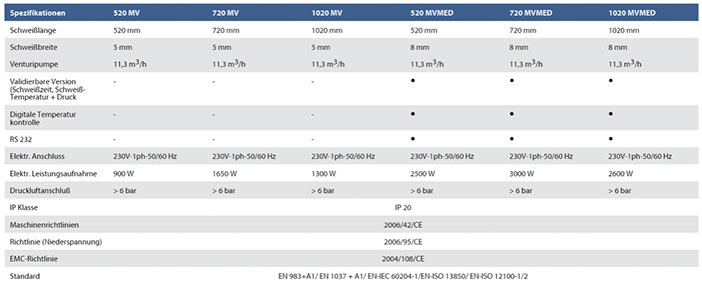 Ausführung eignet sich für validierbare Prozesse Verfügbare Schweißlängen: 520 mm, 720 mm und 1020 mm,