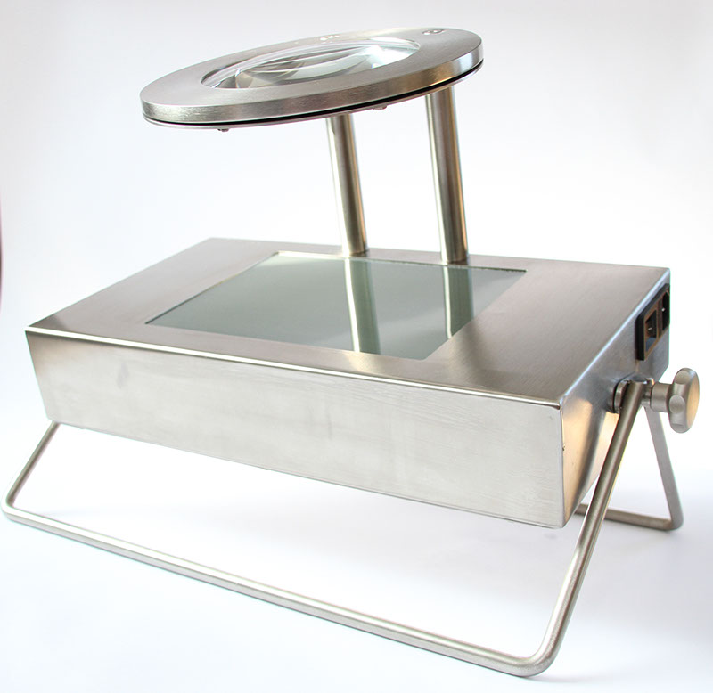 Als Zusatzausstattung zur einfacheren Prüfung von Ampullen ist optional eine Plankonvexlinse erhältlich.