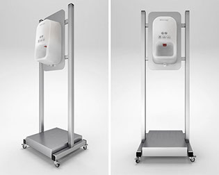 für die berührungslose Desinfektion beider Hände. Überschüssige Flüssigkeit kann Arbeits- und Bodenbeläge nicht beeinträchtigen.